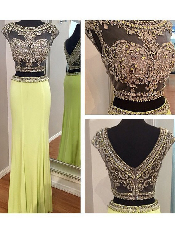 prom dresses for teens,Yellow A-line Bateau Floor-length Chiffon Outfit Prom Dresses Evening Dresses 6146