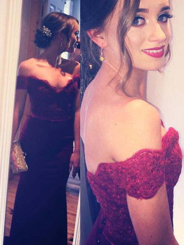 prom dresses with straps,Burgundy Trumpet/Mermaid Off-the-shoulder Chiffon Prom Dresses Evening Dresses 8650