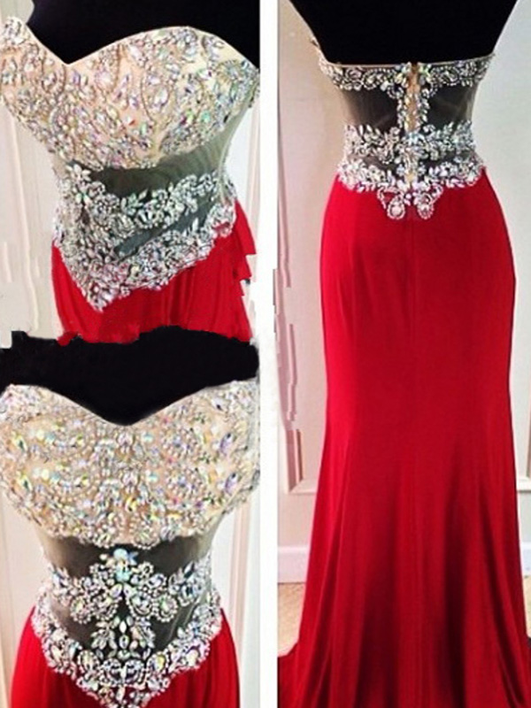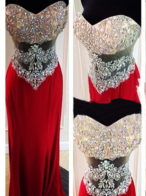 Red prom dresses,Red Sheath/Column Sweetheart Floor-length Chiffon 2016 Prom Dresses Evening Dresses 8645