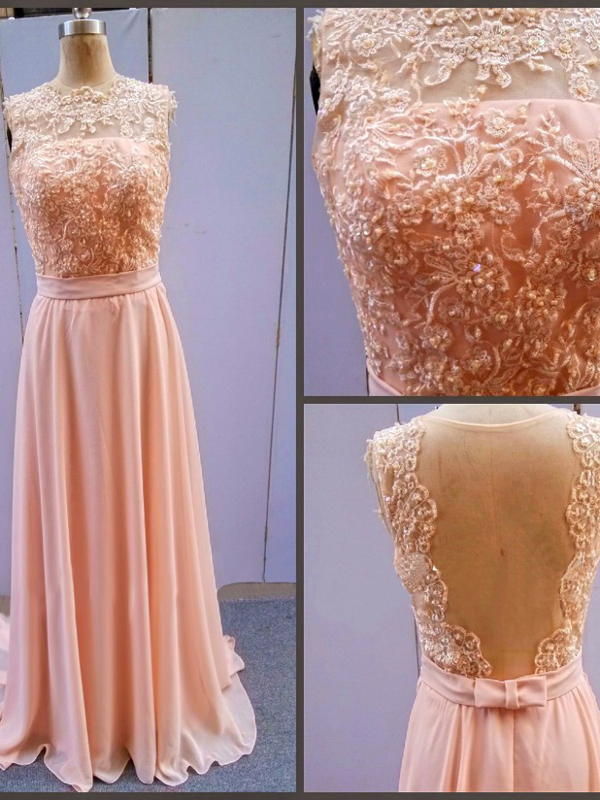 flowy prom dresses,Pink A-line Bateau Chiffon Appliques Prom Dresses Evening Dresses 1250
