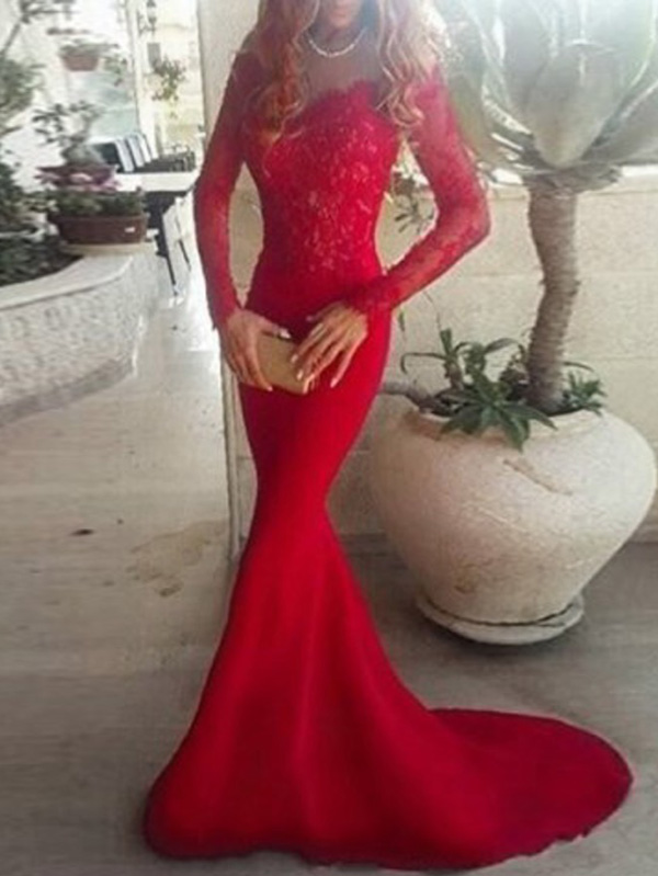 coral prom dresses,Red Trumpet/Mermaid Off-the-shoulder Floor-length Chiffon Prom Dresses Evening Dresses 8690
