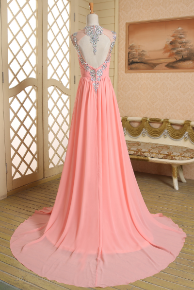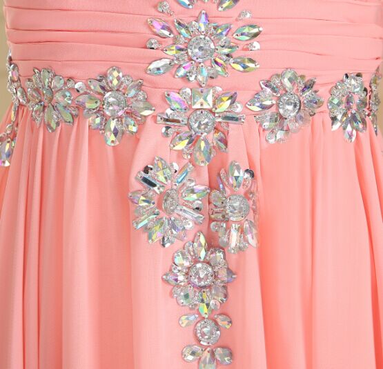 a-line prom dresses,Pink A-line Straps Rhinestone Prom Dress 2016 Prom Dresses Evening Dresses 012