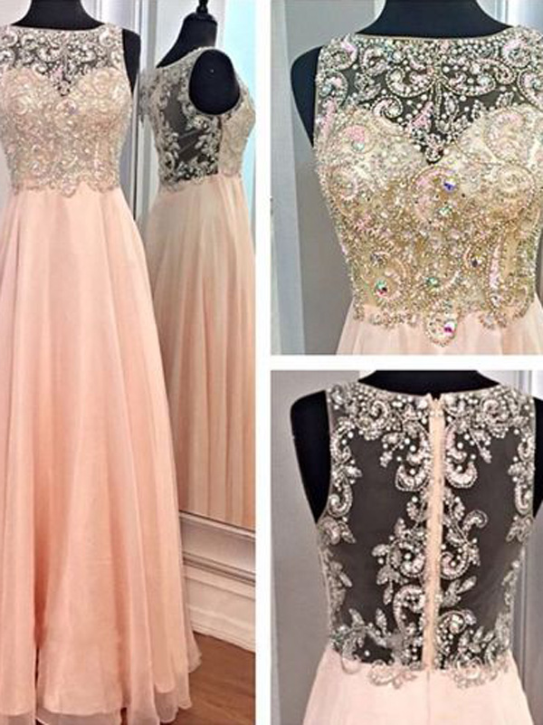 chiffon prom dresses,Pink A-line Bateau Chiffon Prom Dresses Evening Dresses 6164