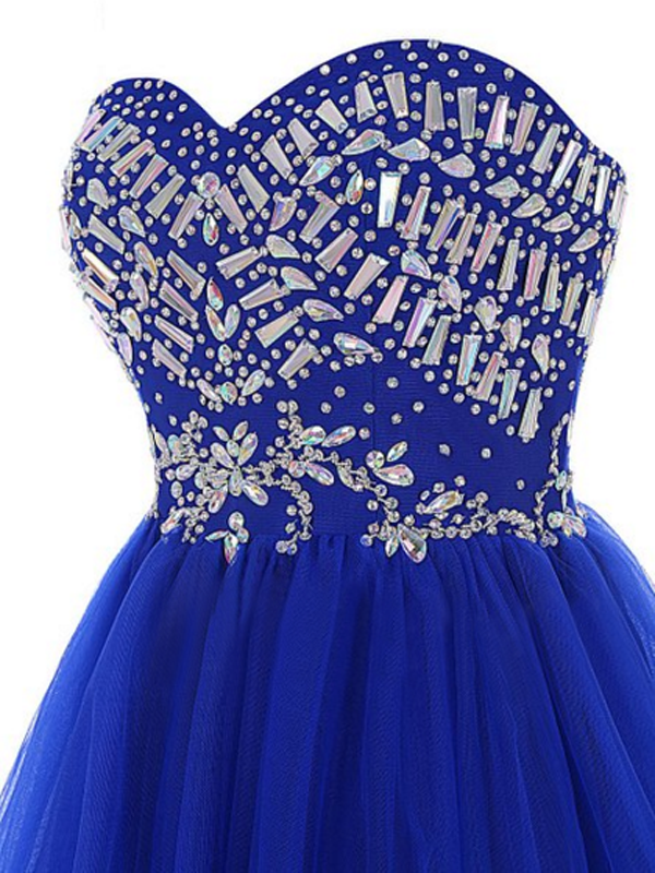 royal blue short prom dresses,Royal Blue A-line Sweetheart Short Mini Tulle Homecoming Dresses Short Prom Dresses 9638