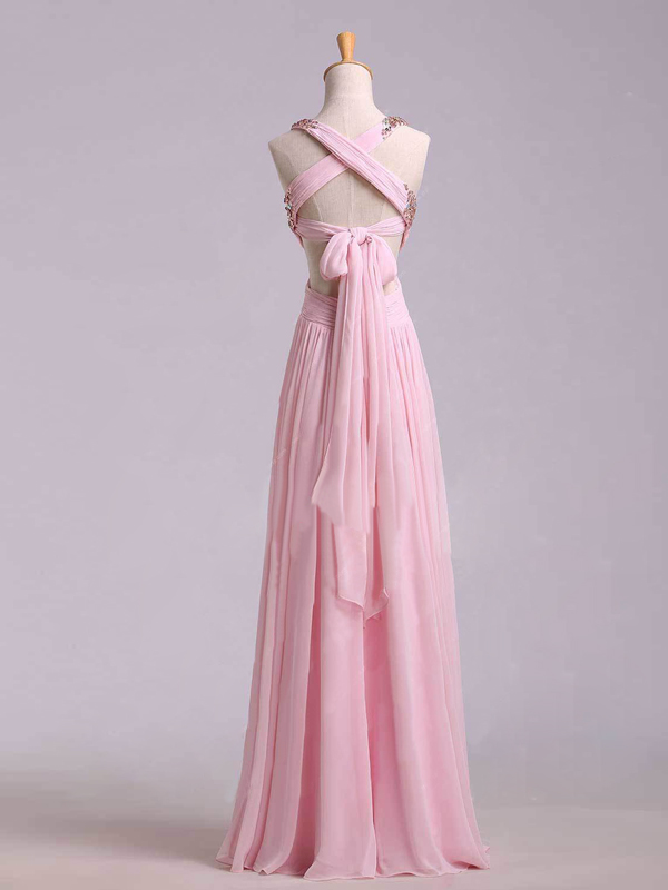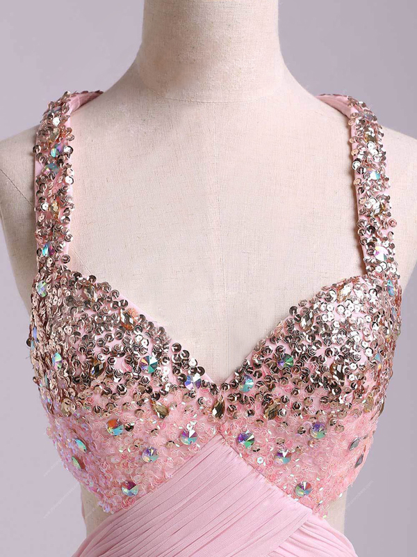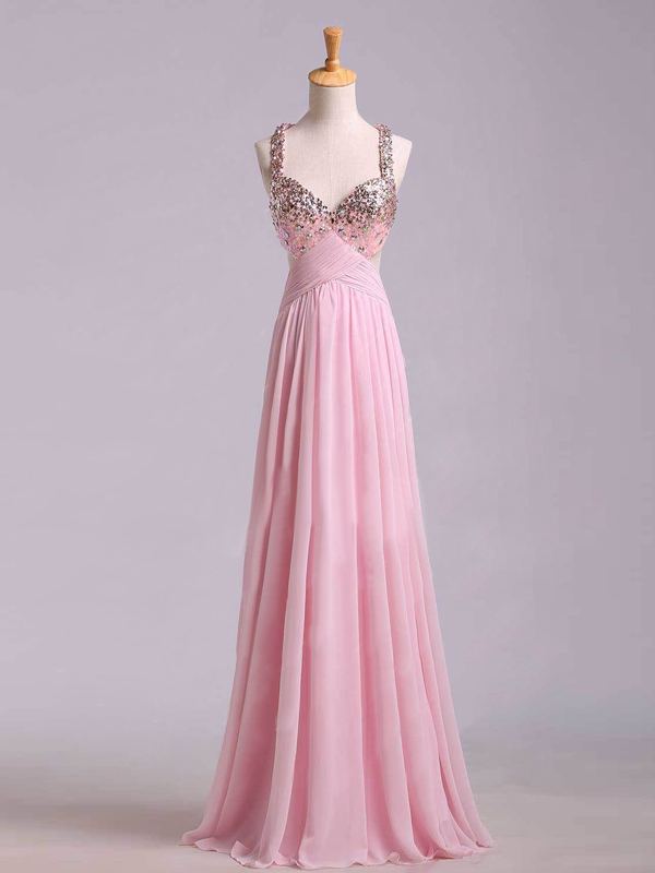 elegant prom dresses,Pink A-line Straps Sleeveless Chiffon With Rhinestone Prom Dresses Evening Dresses 1420