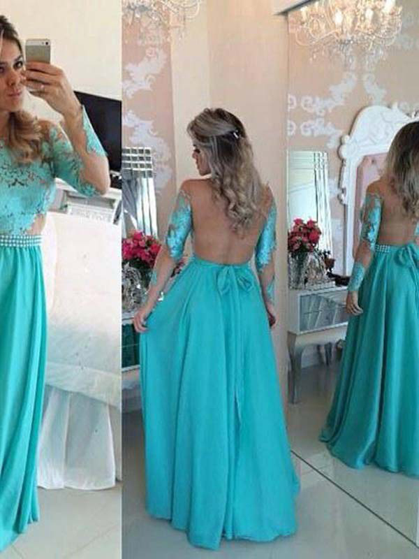 chiffon prom dresses,Long Sleeve A-line Scoop Chiffon With Appliques Prom Dresses Evening Dresses 1297