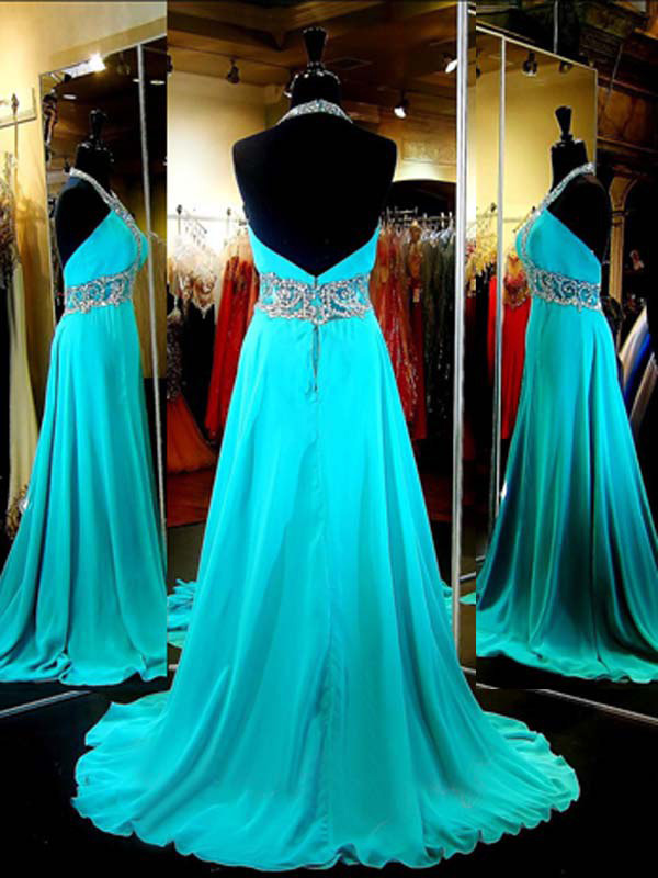prom dresses long,Mint A-line Scoop Chiffon Prom Dresses Evening Dresses 8119