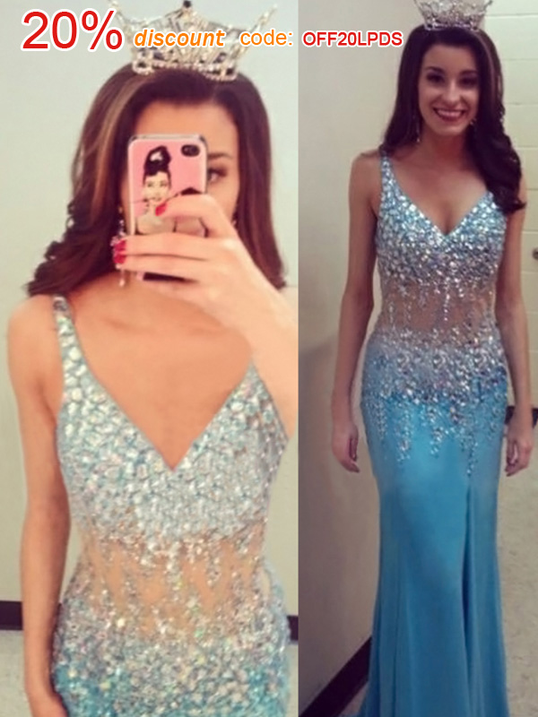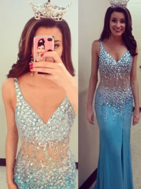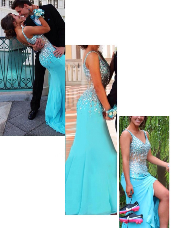 vintage prom dresses,Blue Trumpet/Mermaid Sexy V-neck Floor-length Chiffon Prom Dresses Evening Dresses 6149