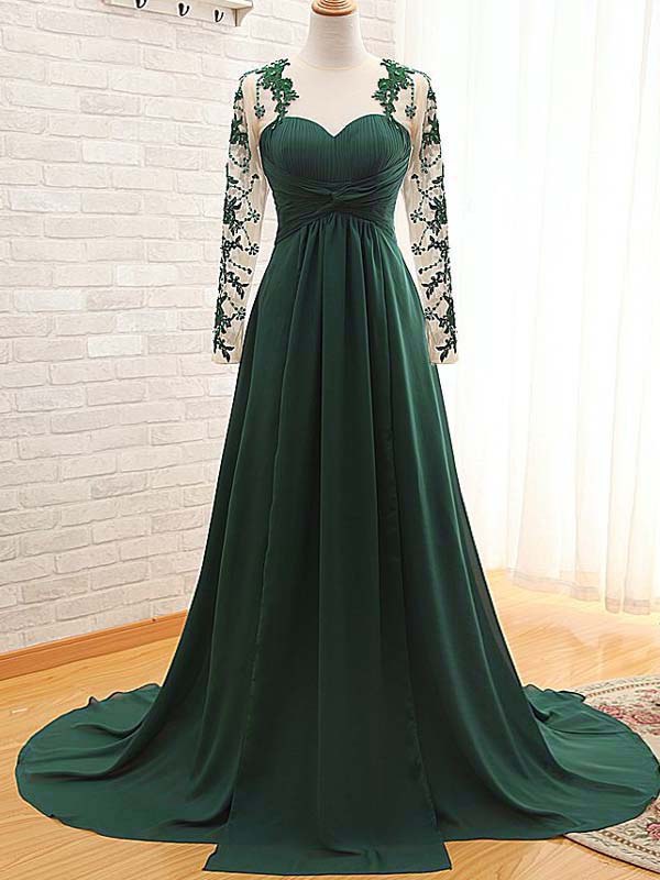 gorgeous prom dresses,Hunter A-line Straps Long Sleeve Chiffon Prom Dresses Evening Dresses 1392