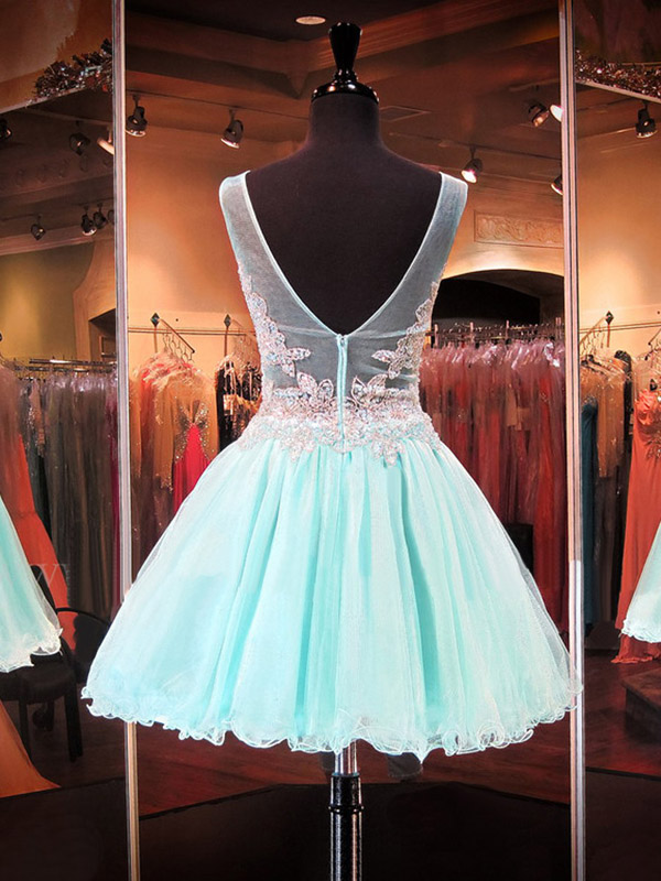 mint prom dresses,Mint A-line Bateau Sleeveless Short/Mini Tulle Homecoming Dresses Short Prom Dresses 1486