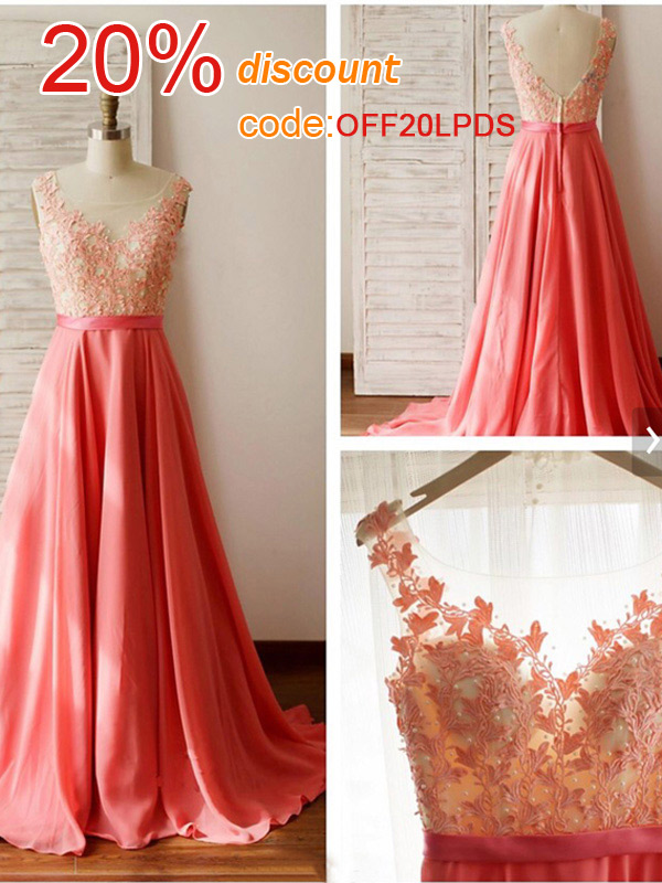vestidos prom dresses,Peach A-line Scoop Floor-length Chiffon Prom Dresses Evening Dresses 8794