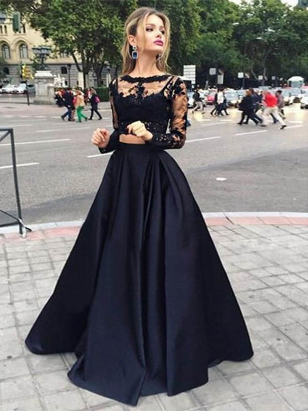 elegant prom dresses,A-line Scoop Floor-length Satin Prom Dresses Evening Dresses 8761