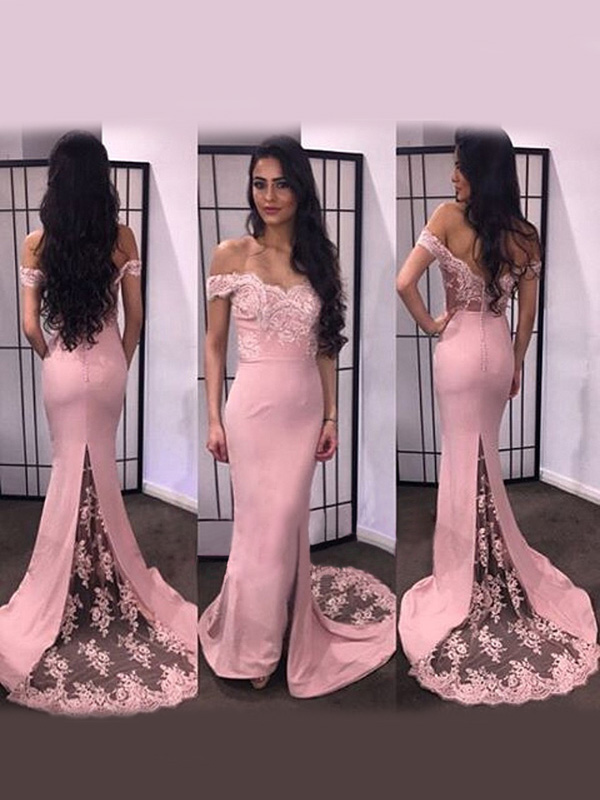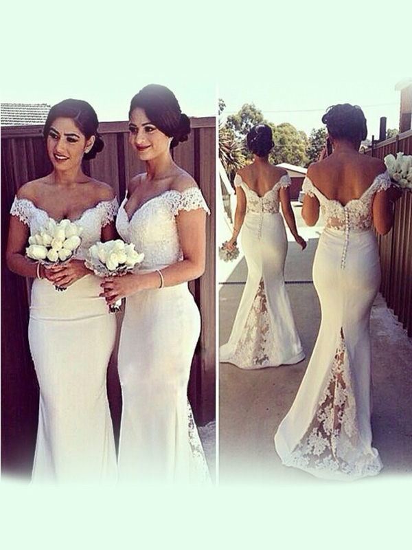 white prom dresses,White Trumpet/Mermaid Off-the-shoulder Floor-length Chiffon Prom Dresses Evening Dresses 8833