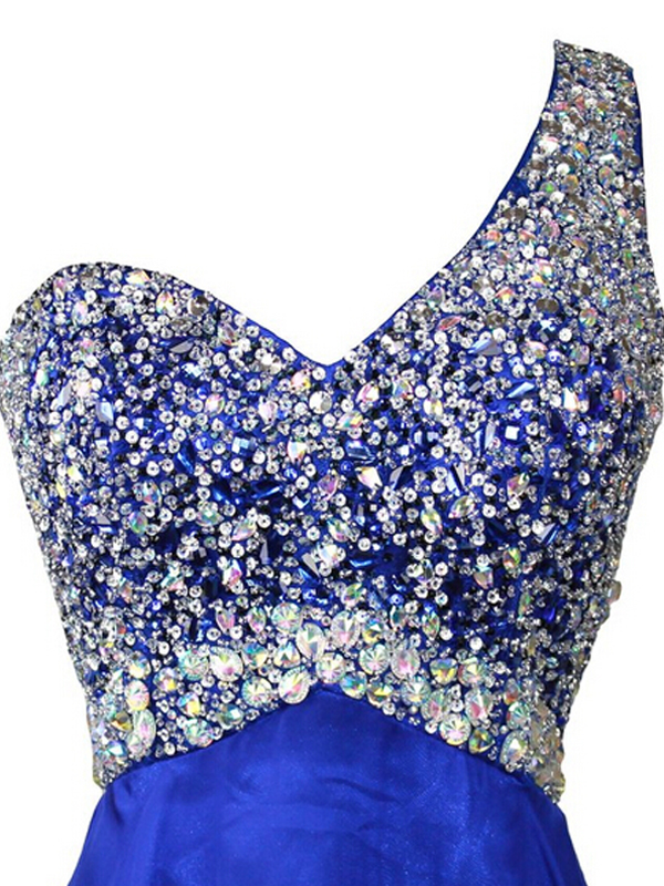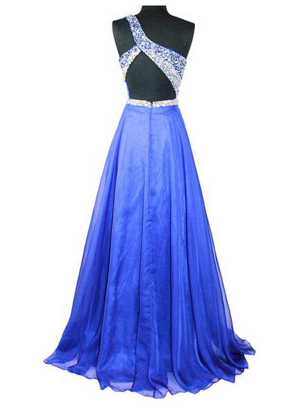 fitted prom dresses,Royal Blue A-line One Shoulder Floor-length Chiffon Evening Dress Prom Dresses 9698