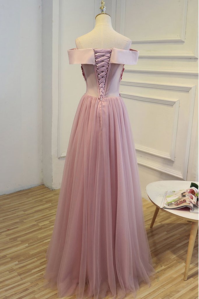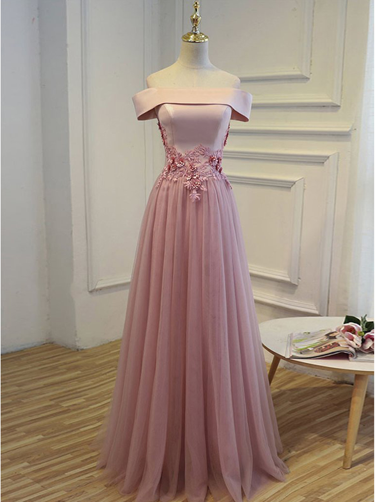 2017 prom dresses,Pink A-line Off-the-shoulder Satin Evening Dress Prom Dresses SKY491