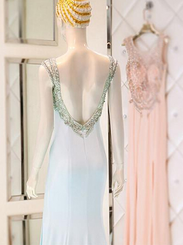 open back prom dresses,Pearl Pink Trumpet Mermaid Scoop Sweep Brush Train Chiffon Evening Dress Prom Dresses 9949