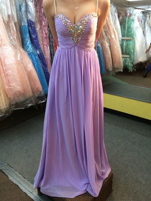 lilac prom dresses,Lilac A-line Spaghetti Straps Floor-length Chiffon Evening Dress Prom Dresses 9994