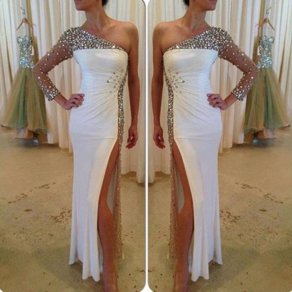 one shoulder prom dresses,White Trumpet Mermaid One Shoulder Ankle-length Elastic Woven Satin Evening Dress Prom Dresses 10009