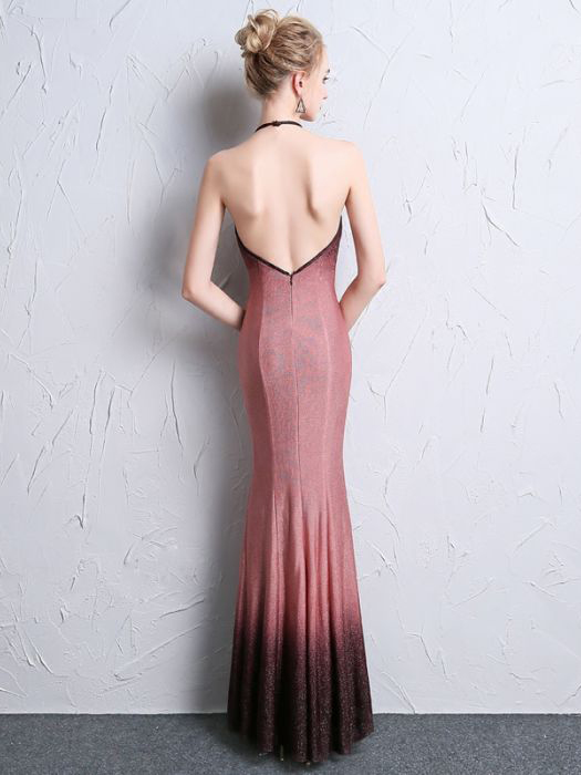 Pink Prom Dress,Trumpet/Mermaid Spaghetti Straps Halter Floor-length Prom Dress Evening Dress AM964